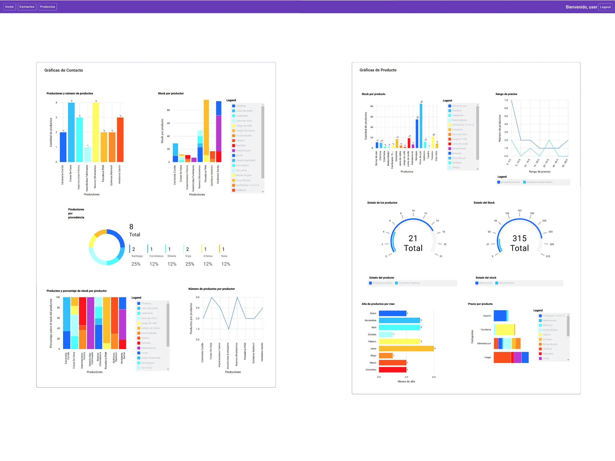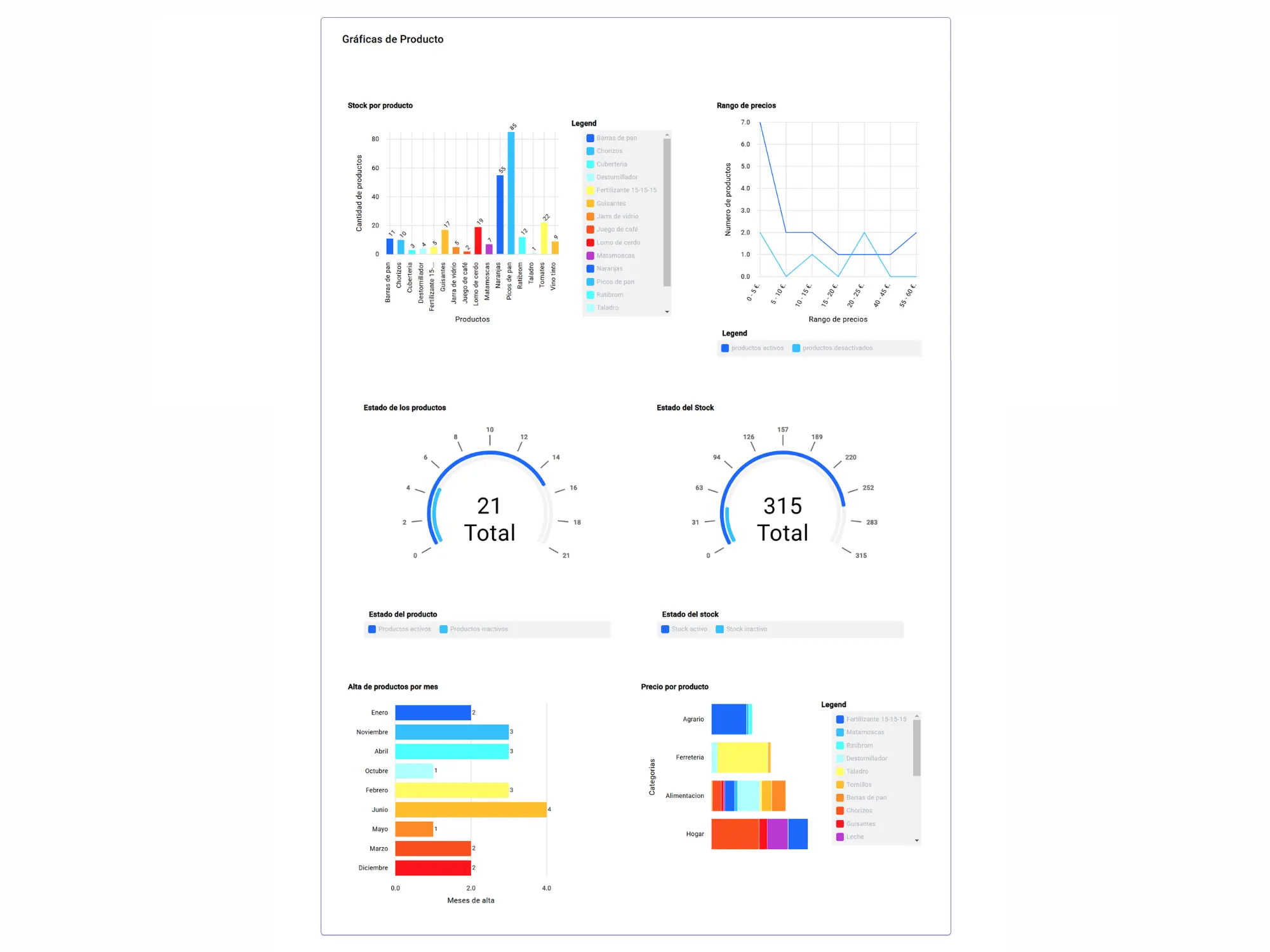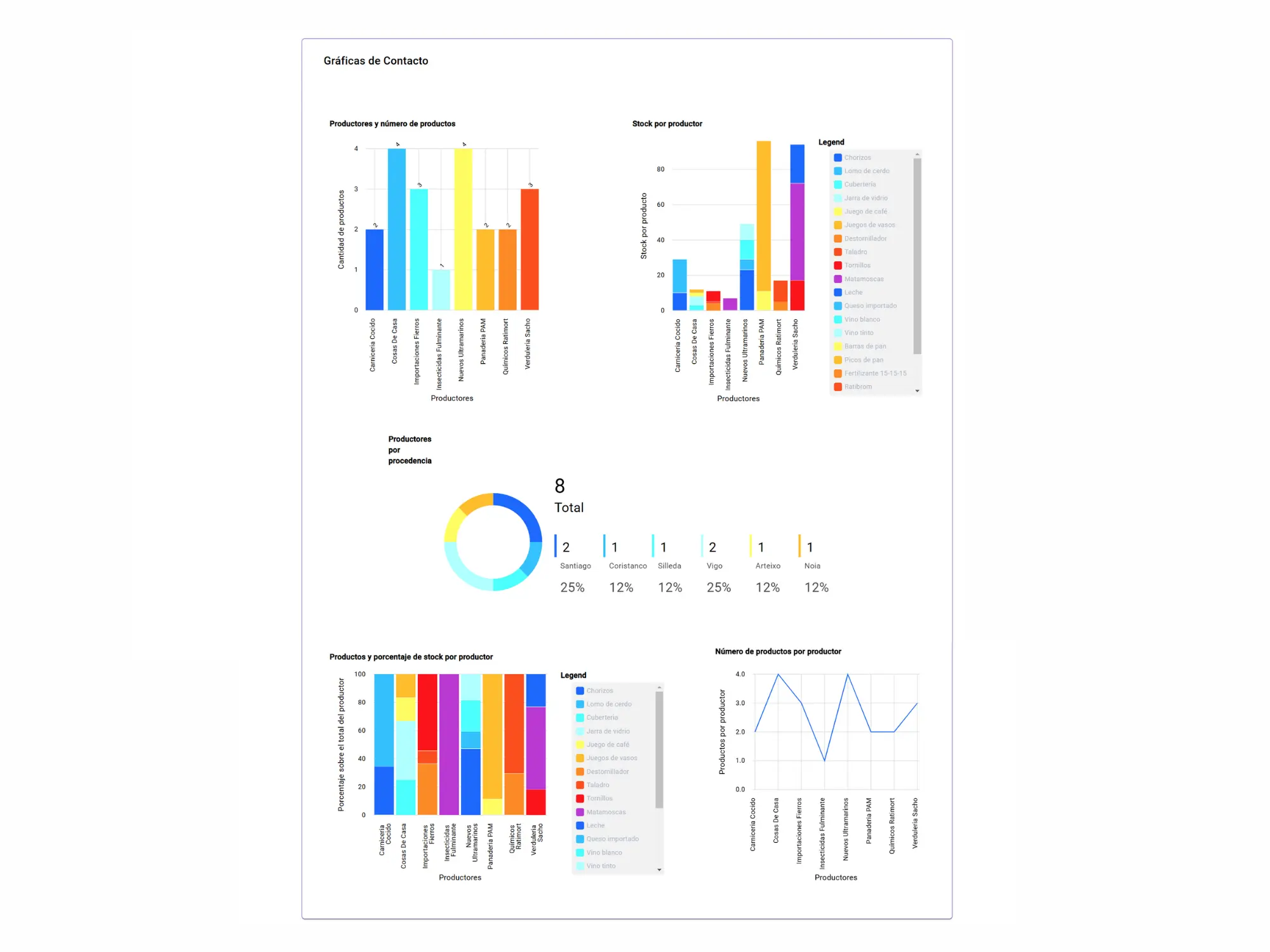 Imagen de los gráficos de una aplicación para gestión de una tienda o almacén