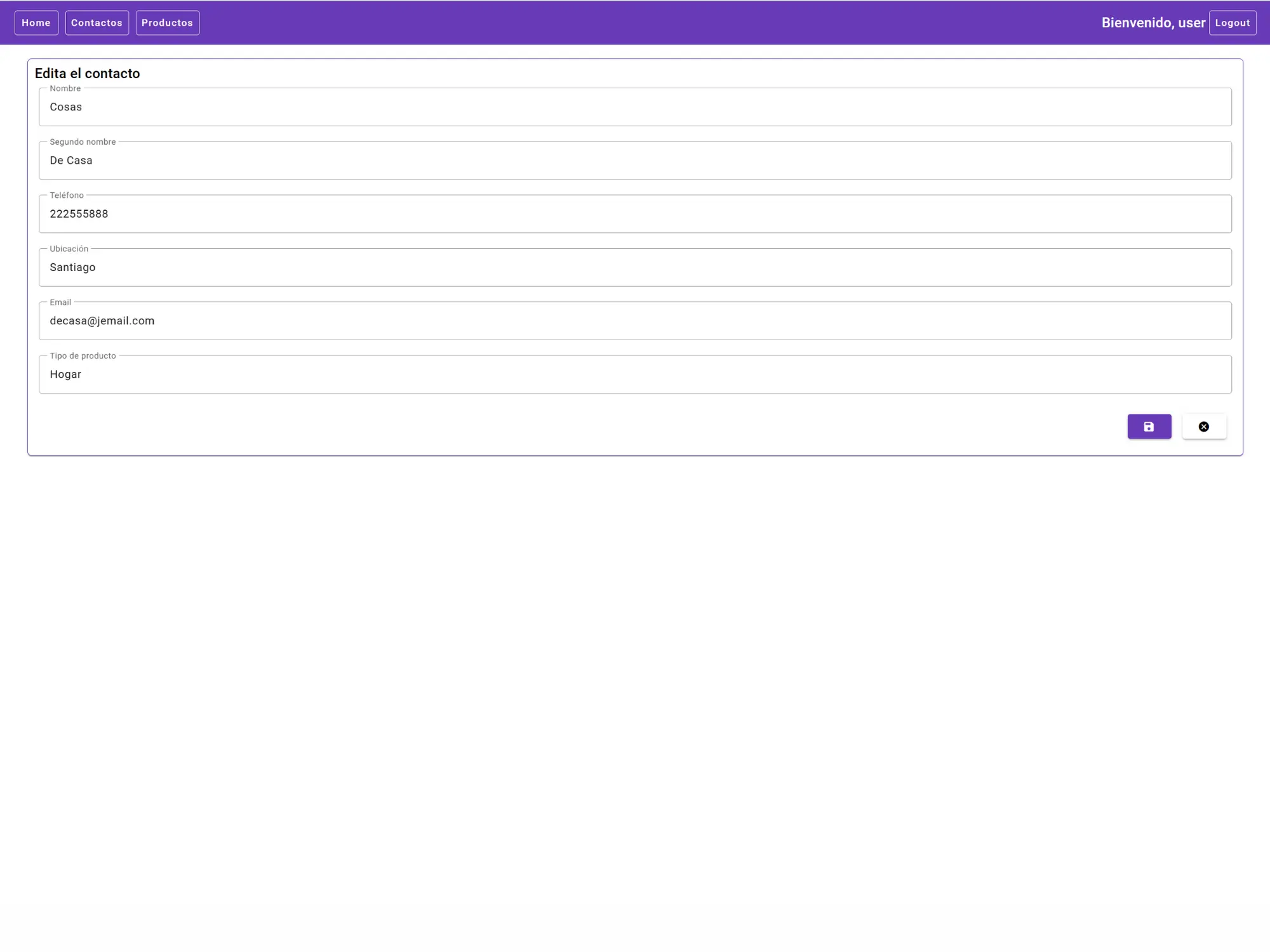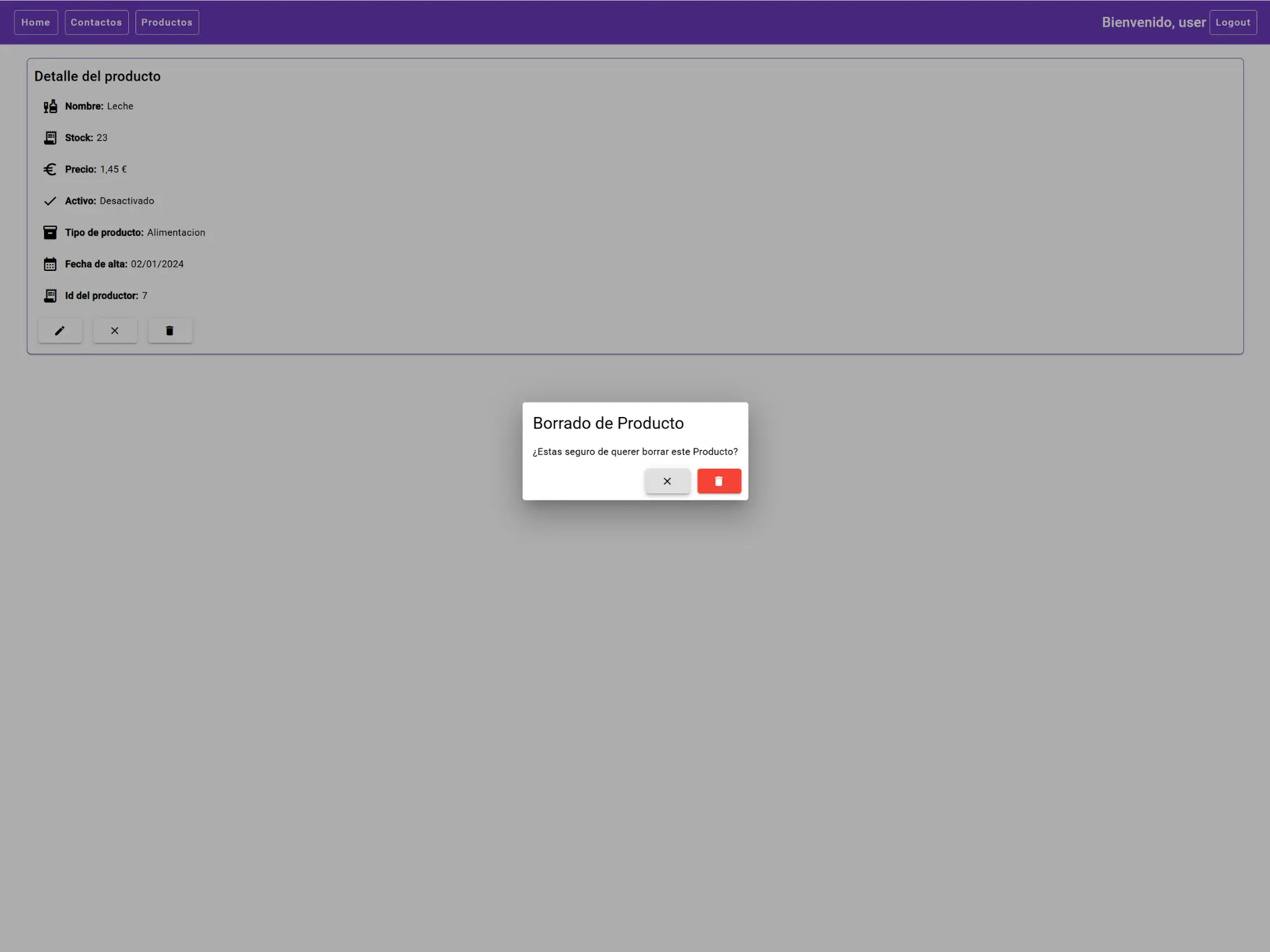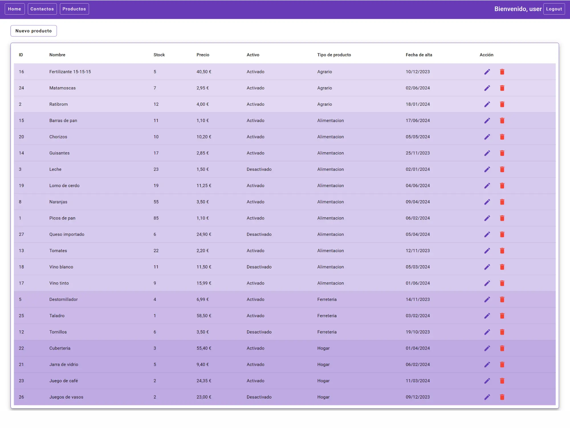 Imagen de la página de productos de una aplicación para gestión de una tienda o almacén